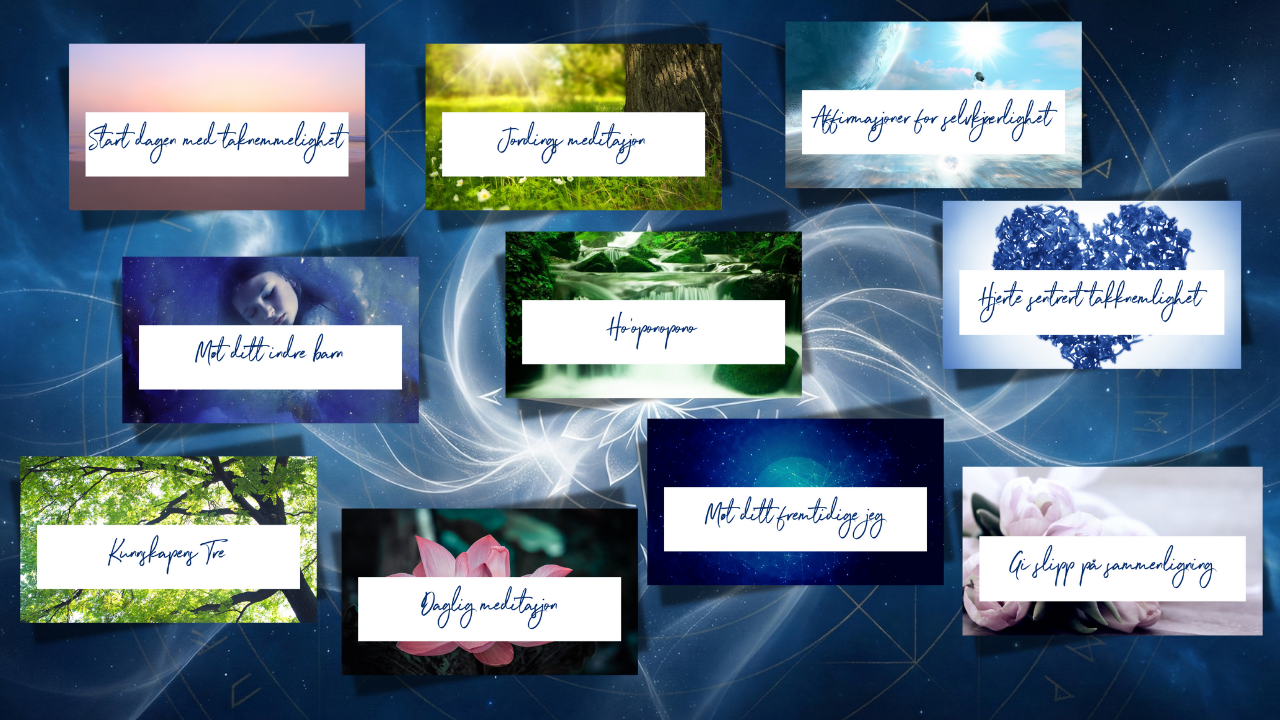 Jeg har samlet disse 10 guidede meditasjonene for å hjelpe deg skape en dypere kontakt innover og finne et sterkere indre anker slik at du kan gå ut i verden og skinne mye mer av det lyset du er.